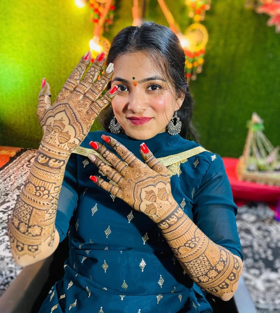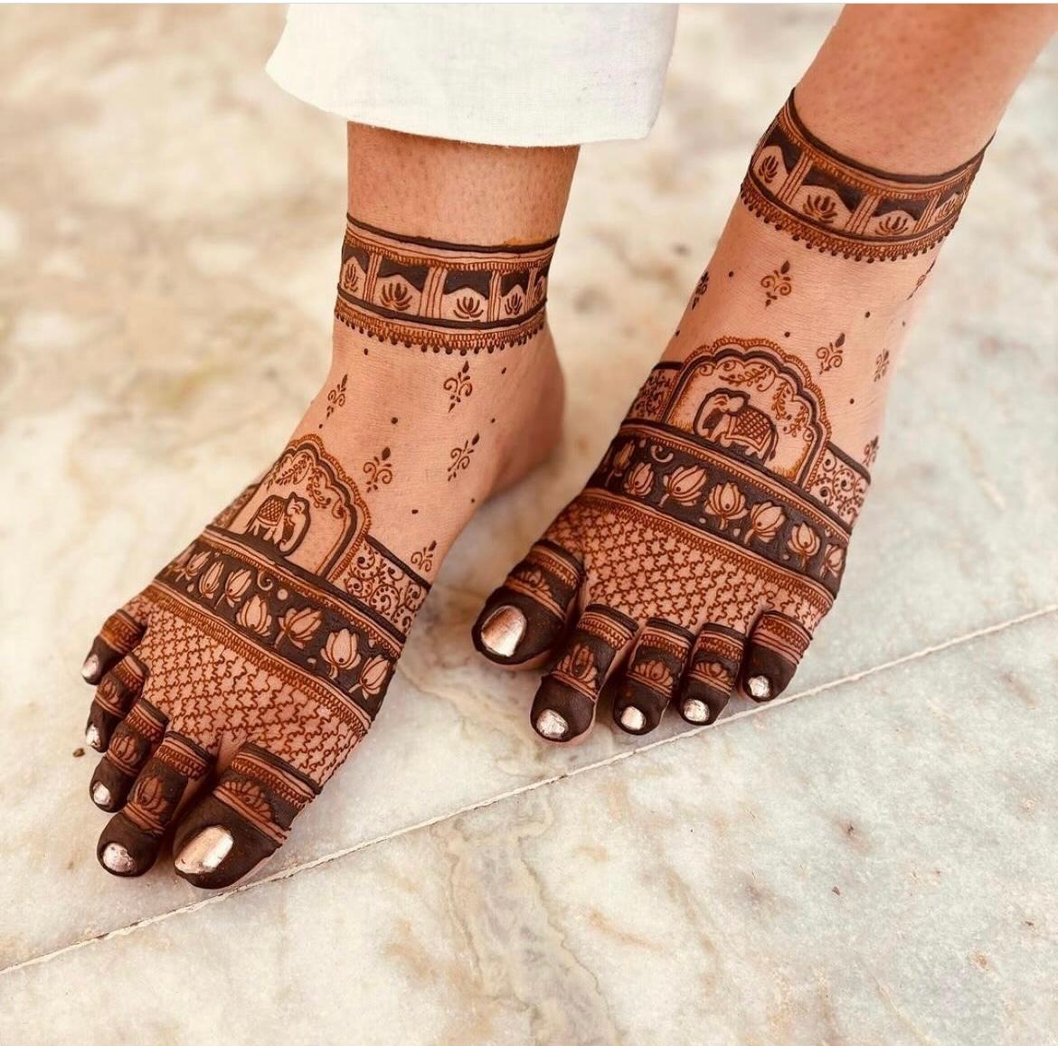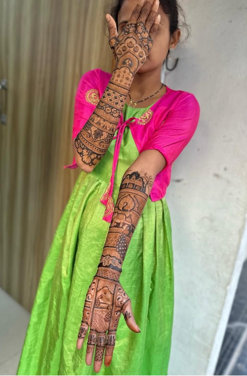 Rich, detailed bridal mehndi designs customized to reflect your love story.
