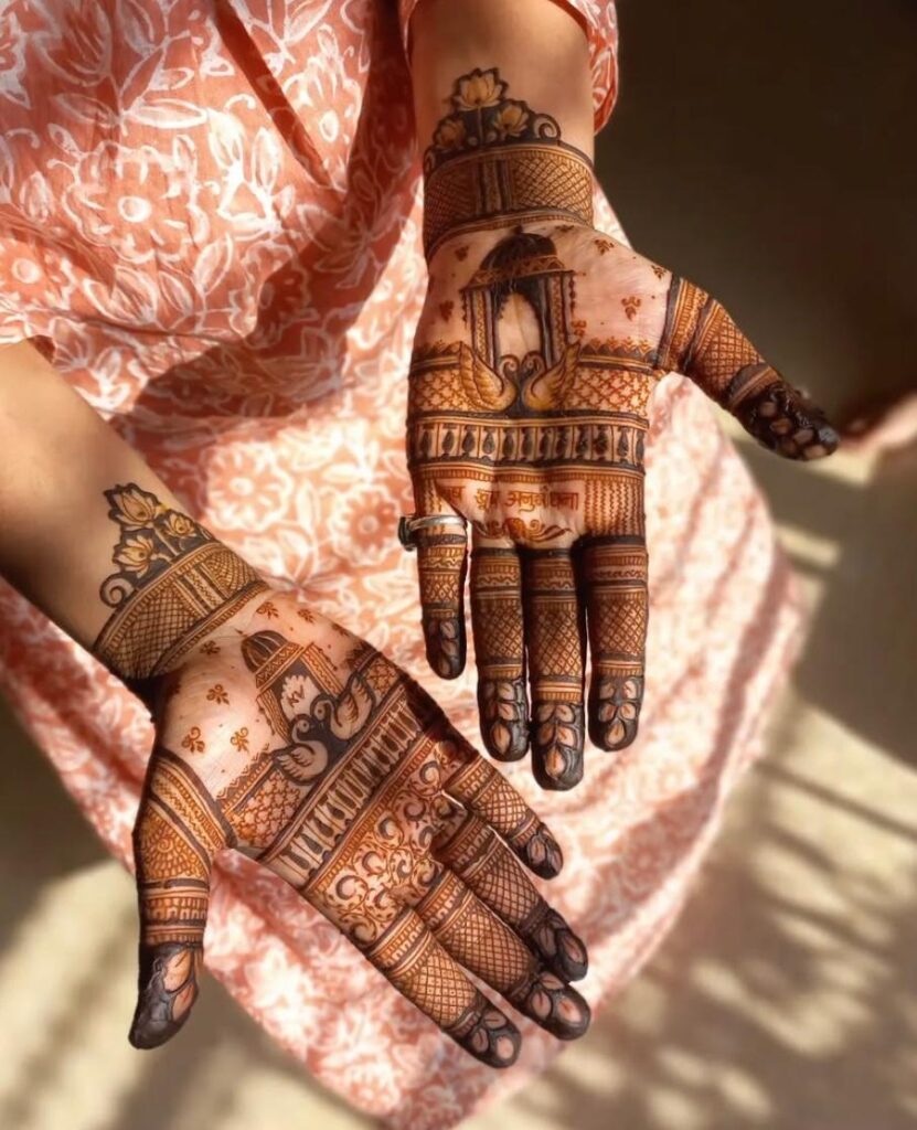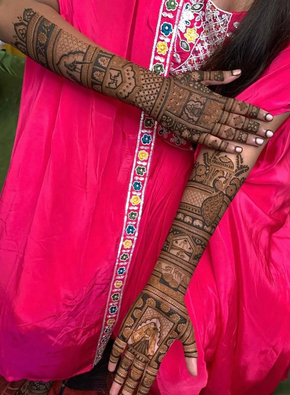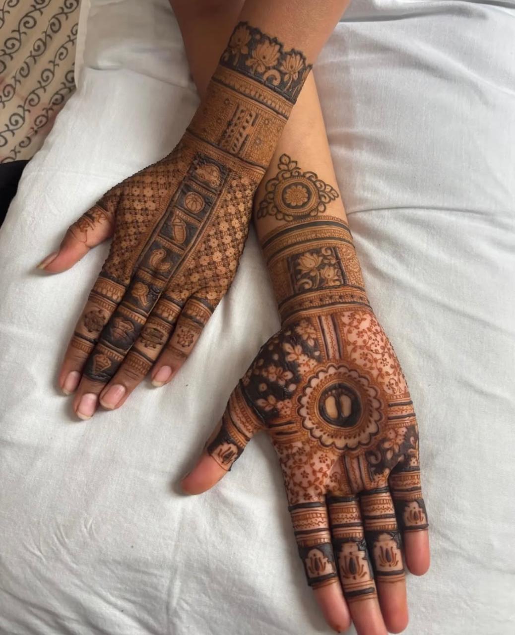 Rich, detailed bridal mehndi designs customized to reflect your love story.